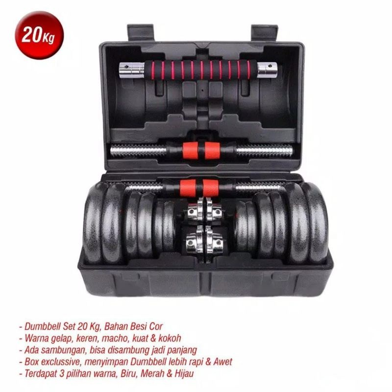 Promo Dumbell Barbel Set Max 20kg Tiang Angkat Besi 20kg Terlaris