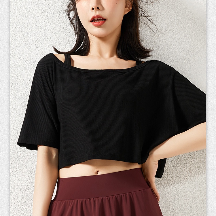 [Spot] Kaos Olahraga Pendek Wanita Crop Tee Gym Dance Cropped Pusar Nyaman Sweatshirt Lengan Pendek Longgar Pakaian Yoga