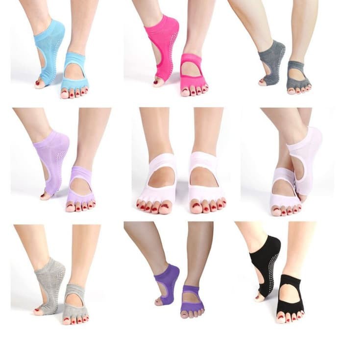 Open Finger Kaos Kaki Yoga Pilates Antislip Socks Jari Terbuka