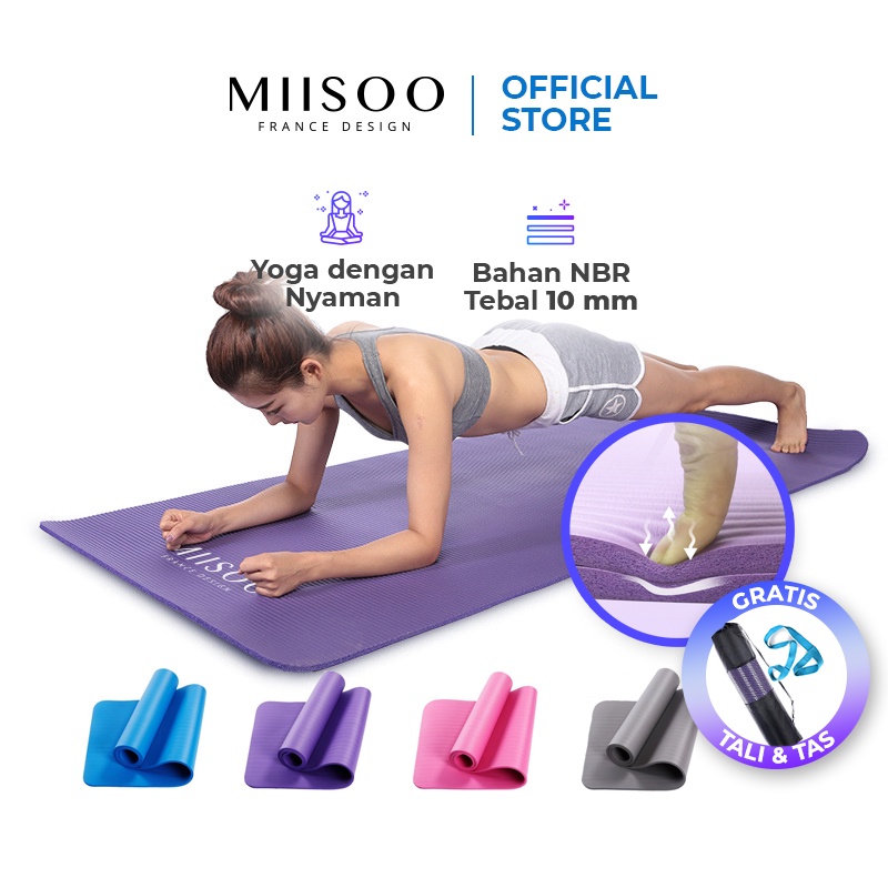 MIISOO NBR Matras Yoga Mat 10mm gym Karpet Senam Yogamat Anti Slip