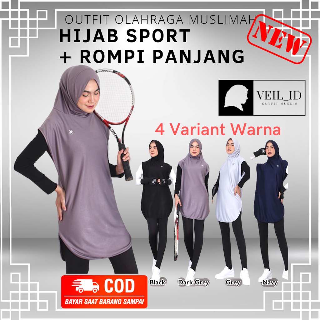 [Bisa COD] Hijab Sport + Rompi Long Vest Outer Instan Olahraga, Outfit Olahraga Fashionable Muslimah 2in1, Hijab Set Panjang Olahraga